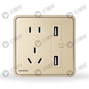 西门子睿绎日曜金10A联体二三极+3.1A二口USB插座