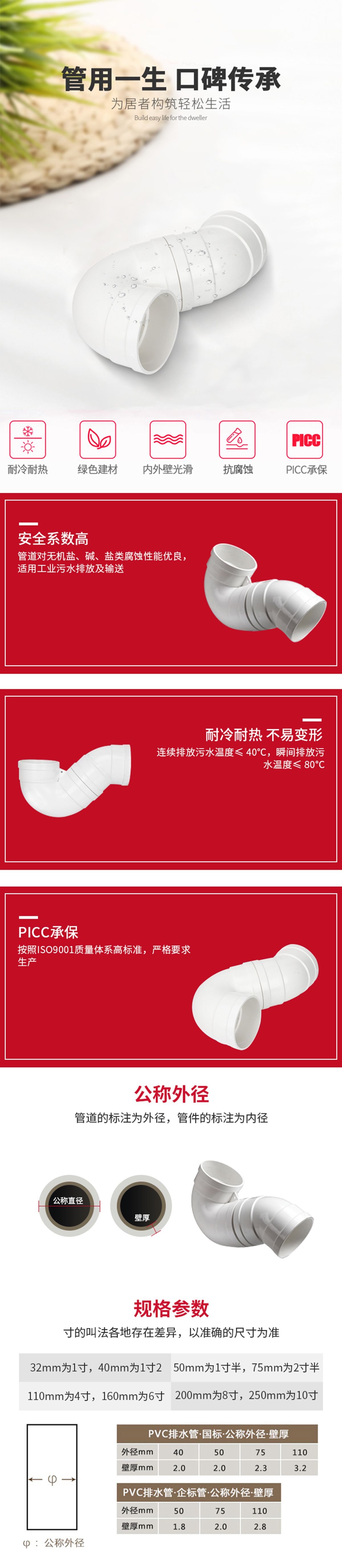 联塑PVC-U 圆底P型存水弯50