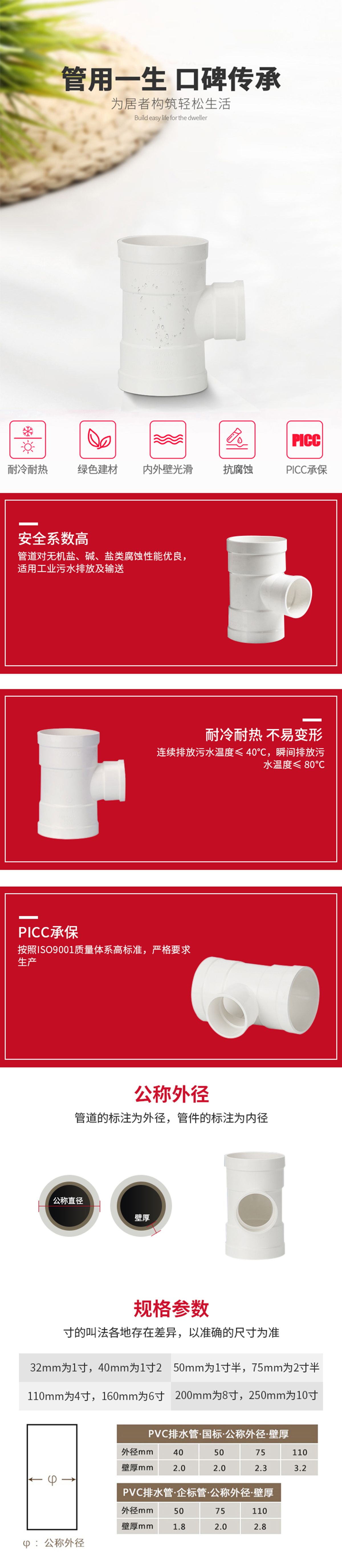 联塑PVC-U 异径三通75*50