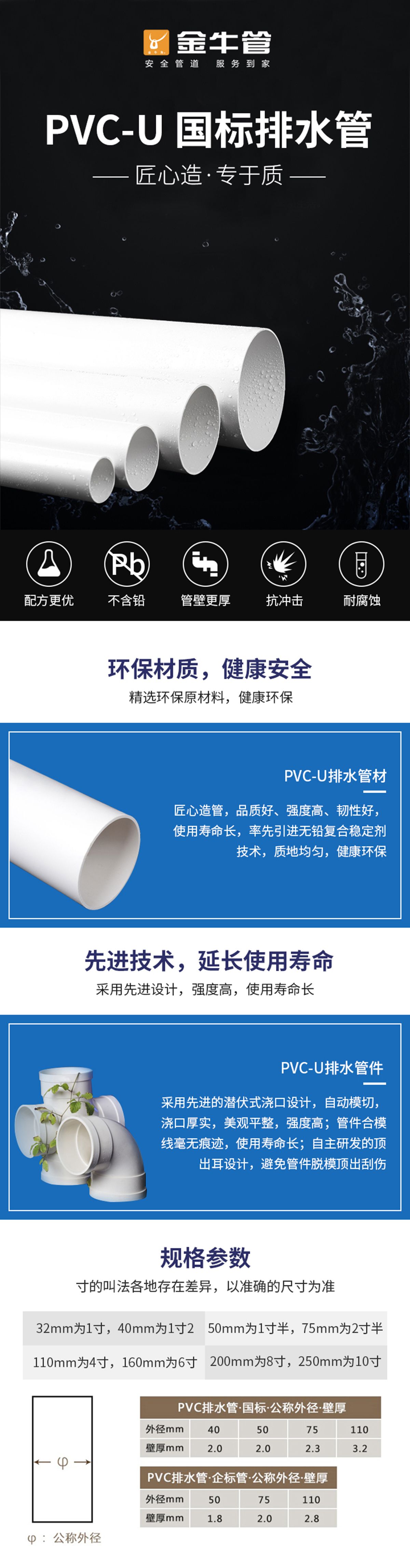 金牛PVC-U排水管材(国标扩口)75*2.3